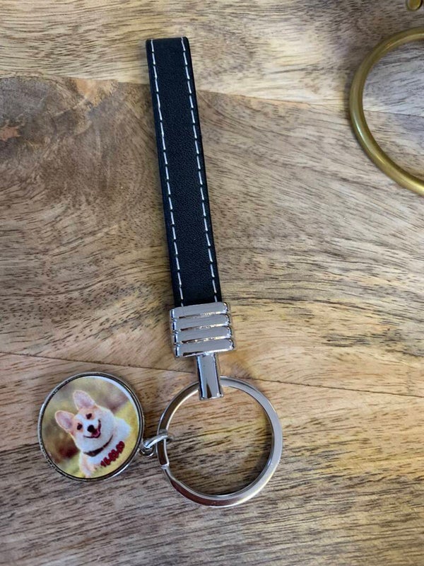 Sleutelhanger zwart leer, met foto en eventueel tekst .