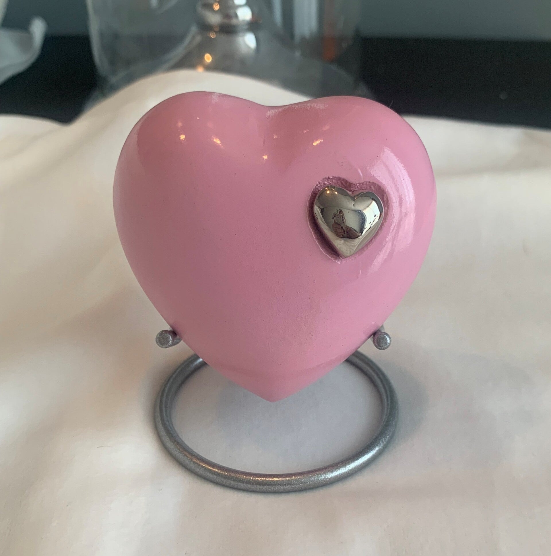 Lieflijk klein urntje in het roze met een klein zilverkleurig hartje erin 💗Houder wordt niet standaard meegeleverd, is aanvullend te bestellen.afmeting:7.5 cm Productcode: NOV-01