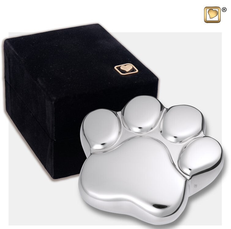 Prachtig glanzend mini urntje in de vorm van een pootje.