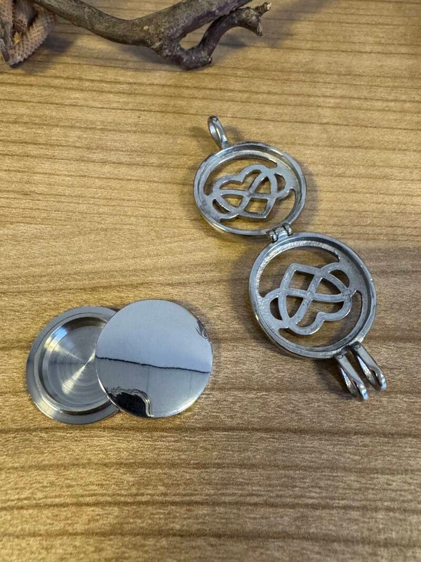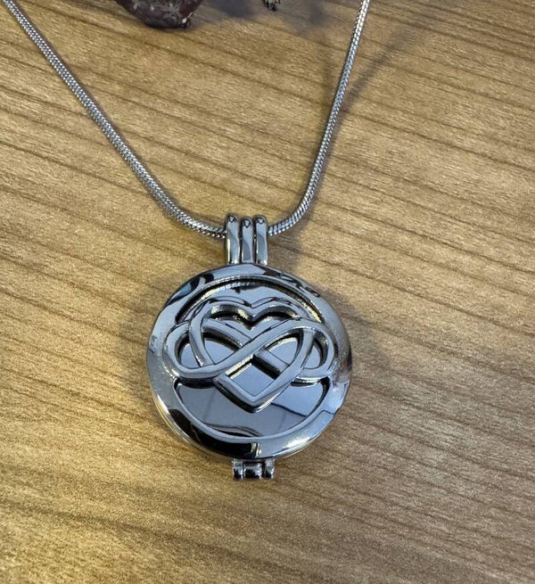 Deze ashanger kan open en in het midden zit een klein reservaar waar het poeder (as) in kan.Collier is 50 cm Productcode 13519