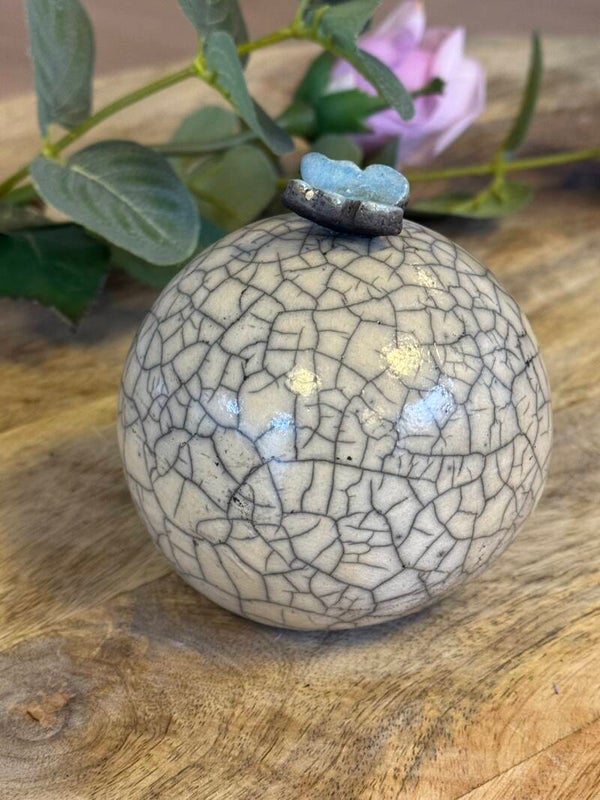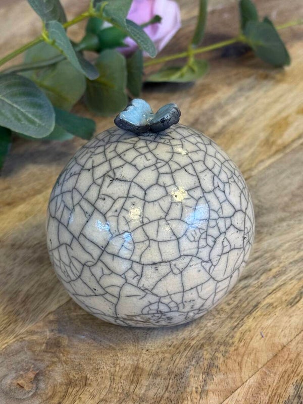 Mooie kleine bol urn met vlinderEen urn met liefde gemaakt voor uw dierbare maatje...Gemaakt uit klei door de raku- techniek door het urnenatelier.Alle urnen zijn uniek.Doorsnee = 8 cm Inhoud: 100mlProductcode: UA025