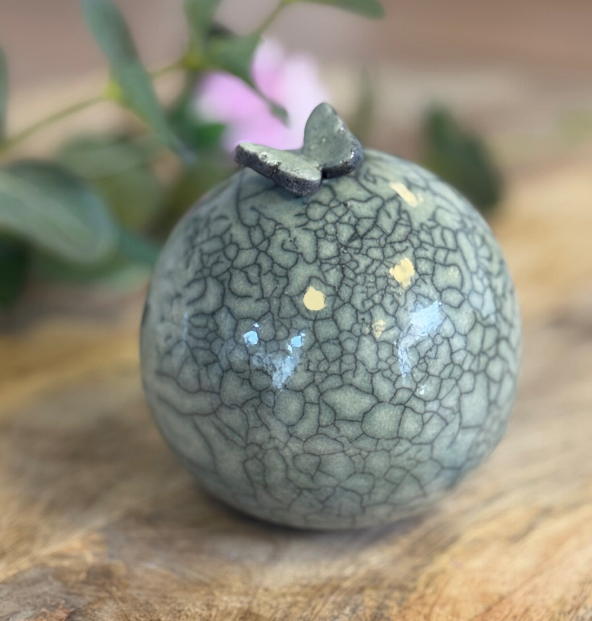Mooie kleine bol urn met vlinderEen urn met liefde gemaakt voor uw dierbare maatje...Gemaakt uit klei door de raku- techniek door het urnenatelier.Alle urnen zijn uniek.Doorsnee = 8 cm Inhoud: 100mlProductcode: UA026