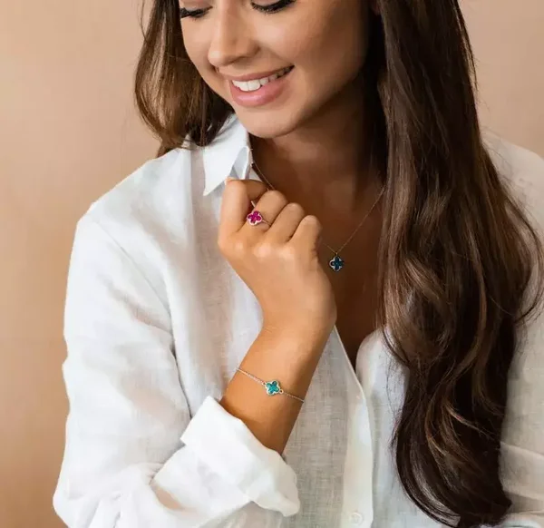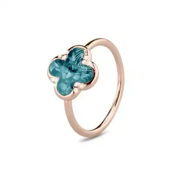 Klaver ring met zirkonia of diamant. Dit sieraad wordt zichtbaar aan de bovenkant gevuld met as of haar en wordt vermengd met onze speciale hars.
