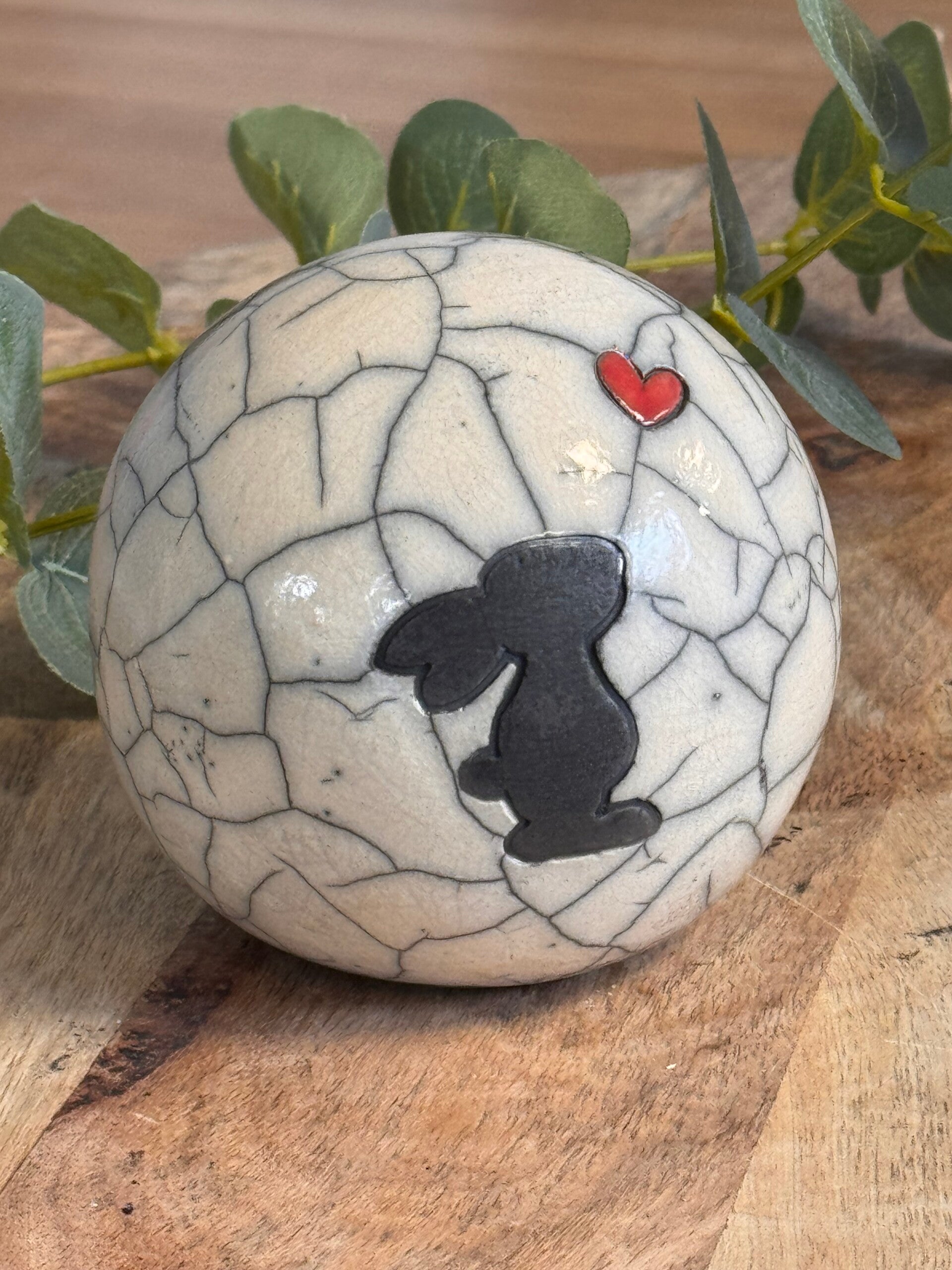 Konijnenurn “Pietertje” creme met rood hartje