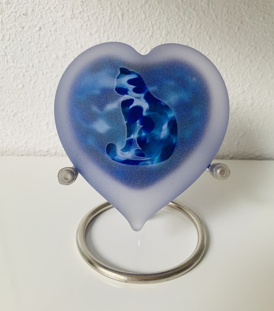 Medium heart, is een prachtige keepsake urn in de vorm van een hart. In de kern van het hart bevindt zich een as-reservoir waar een klein gedeelte van het resomeer-poeder in bewaard kan worden. De opening van het poeder-reservoir bevindt zich aan de achterzijde van het hart. D.m.v. een zelf-hechtend sluitplaatje wordt het as-reservoir afgesloten. Het hart is niet transparant dus het resomeer-poeder is niet zichtbaar. Het hart is uitermate geschikt om op een *houdertje te plaatsen waardoor een uniek en persoonlijk thuis gedenkornament gecreëerd kan worden. Alle as-gedenkornamenten zijn van kristalglas en met de hand vervaardigd. Dit maakt elke ornament uniek. Elk hart heeft een uniek kleurpatroon. Geen een is exact hetzelfde. Het hart is meer dan alleen een keepsake urn, het is een waar kunstwerk ter nagedachtenis van uw dierbare.