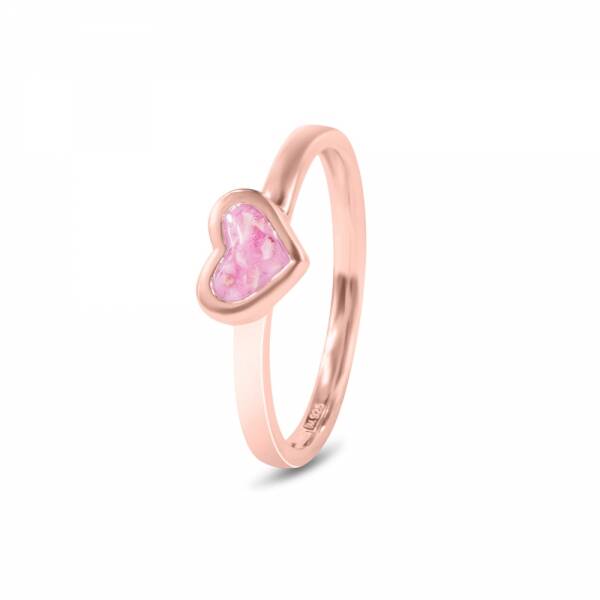Zilveren ring, hart. Dit sieraad wordt zichtbaar aan de voorkant gevuld met resomeerpoeder (as) en wordt vermengd met onze speciale hars. U kunt dit helaas niet zelf vullen. Dit kan door ons gedaan worden. Deze ring wordt ook wel gebruikt als aanschuif ring. Doordat het hartje bovenop de scheen ligt, kan hij makkelijk bij een andere ring aangeschoven worden.