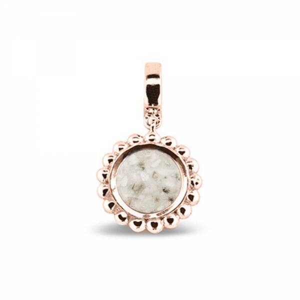 De bedel wordt aan de voorkant gevuld met as of haar. De bedel is geschikt om aan armbanden 811 S, 812 S of 813 S gedragen te worden. Tevens geschikt om aan een Pandora armband te dragen.op de achterzijde is nog plek voor een gravure zoals bijvoorbeeld een naam, datum .