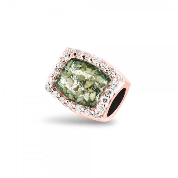 Zilveren bedel met zirkonia. De bedel kan aan beide zijden gevuld worden met as of haar. De bedel is geschikt om aan armbanden 811 S, 812 S of 813 S gedragen te worden. Tevens geschikt om aan een Pandora armband te dragen.
