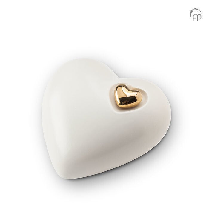 Keramische hart urn wit met gouden hartje